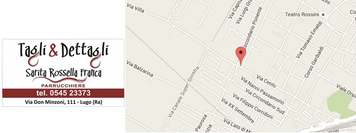 Il salone si trova a Lugo (RA) in via Don Minzoni n.111. Per info e appuntamenti contattateci al n. 0545-23373, saremo lieti di prenderci cura dei vostri capelli. Cliccate sulla mappa per avere indicazioni stradali dettagliate. Seguite le nostre inziative su FACEBOOK. |